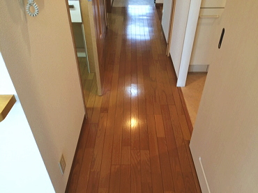 ガラスコーティングの被膜はフローリングの風合いを生かした自然な仕上がりが特徴の一つです。