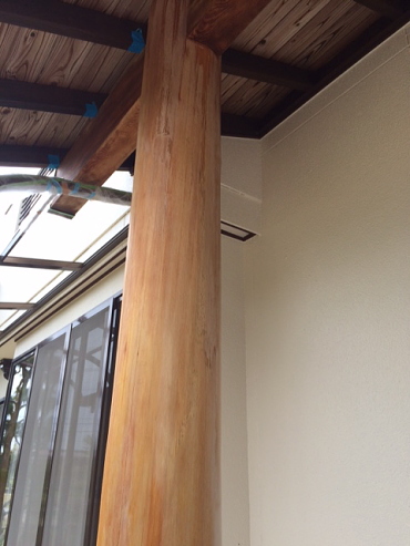 太い柱は日光やほこり、雨風に晒されることも手伝って木材の劣化が加速します。