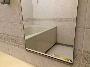 浴室の鏡に付着したウロコ状の水アカ除去です。最近では100円ショップで簡易的な清掃道具(鏡研磨用ダイアモンドパッド)も販売してますが…実はこれは鏡よりも硬いもので表面を研磨する訳ですから効果はありますが、目に見えない研磨傷が出来てしまい、次の水アカの付着しやすい状態になってしまいます。